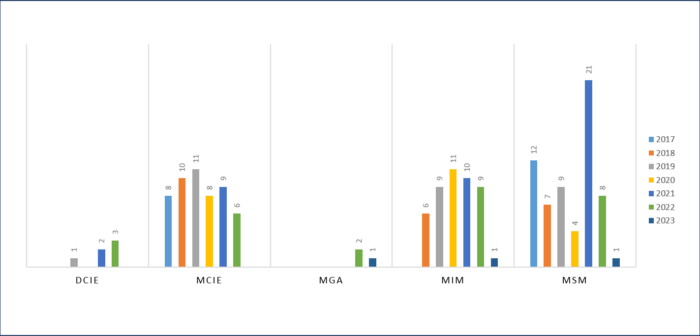 DCIE: Doctorado en Ciencias en Ingeniería Electrónica; MCIE: Maestría en Ciencias en Ingeniería Electrónica; MGA: Maestría en Gestión Administrativa; MIM: Maestría en Ingeniería Mecatrónica; MSM: Maestría en Sistemas de Manufactura
